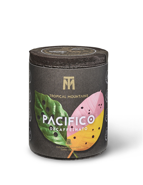 Der entkoffeinierte Bio Kaffee ‘Pacifico’ von Tropical Mountains ist ein fair gehandelter Kaffee aus biologischem Anbau. Die Kaffeebohnen stammen aus der Hand von peruanischen Kleinbauern. ‘Pacifico’ ist ein natürlich entkoffeinierter Kaffee. Er duftet in der Tasse aromavoll und leicht nach gerösteten Nüssen. Nespresso® kompatible Kapseln. Eine Packung enthält 21 Kapseln. Die Kapseln und die Verpackung sind Aluminium frei und kompostierbar.
