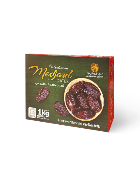 Orientalischer Superfood-Genuss der Extraklasse: Unsere naturbelassene Jumbo-Medjool-Dattel aus Palästina ist die Königin unter den Datteln: gross, weich und verführerisch aromatisch mit natürlicher Vanille- und Caramel-Note. Dank der aufwendigen Erntemethode, bei der die Früchte bis zur vollen Reife an der Palme bleiben, entfalten sie ihr volles Aroma – ganz ohne künstliche Behandlung. Mit jedem Bissen unterstützt du faire Arbeitsplätze, nachhaltige Anbaumethoden und ein Projekt, das Mensch und Umwelt gleichermassen guttut.