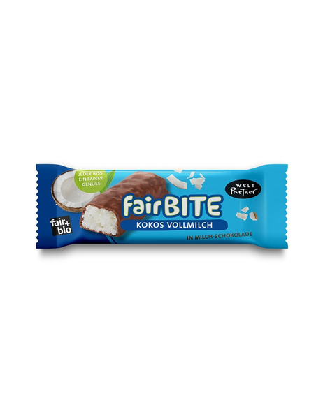Barre à la noix de coco bio issue du commerce équitable, enrobée d'un délicieux chocolat au lait. Les noix de coco râpées bio et aromatiques proviennent de la coopérative MAL du Sri Lanka.