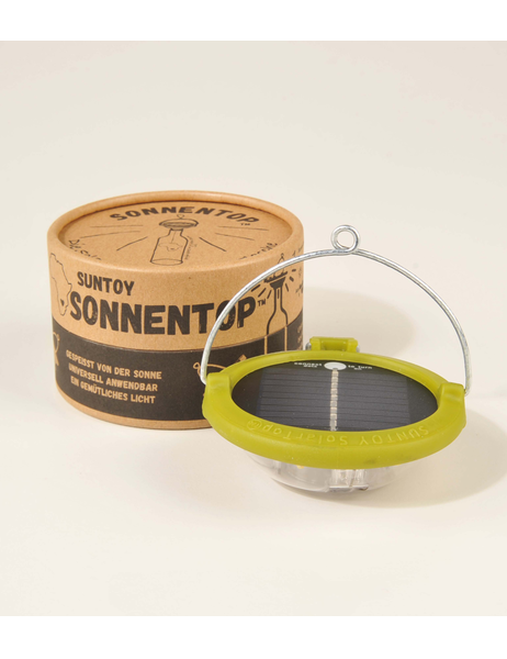 Emballage en carton. Jusqu'à 12 heures de lumière. Fait main. Le sun top est une lampe solaire innovante qui peut être utilisée de différentes manières - comme lampe suspendue ou comme lampe de table lorsqu'elle est fixée à une bouteille vide.
