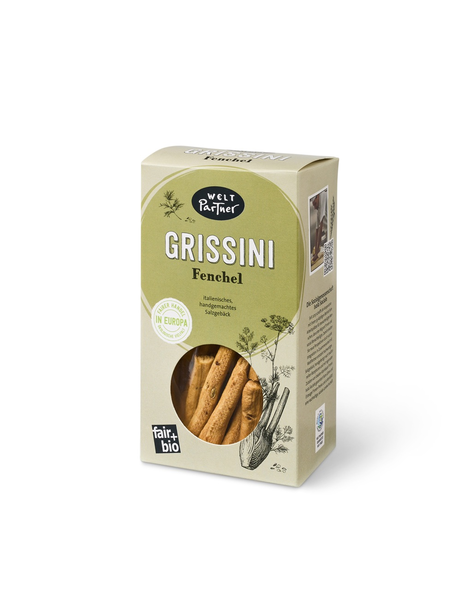 Le plaisir équitable des Pouilles avec les grissini aux graines de fenouil - biscuits salés italiens faits à la main. Nos taralli, grissini et trecce sont synonymes de goût authentique et de plaisir responsable. En collaboration avec Isola Sociale, une coopérative sociale du sud de l'Italie, nous apportons à votre table des produits bio équitables de grande qualité, préparés selon des recettes traditionnelles des Pouilles. Fabriqués sans levure et à partir d'ingrédients biologiques, affinés avec la meilleure huile d'olive de Canaan en Palestine, ils dégagent un arôme incomparable qui fait ressentir la tradition artisanale des Pouilles à chaque bouchée.